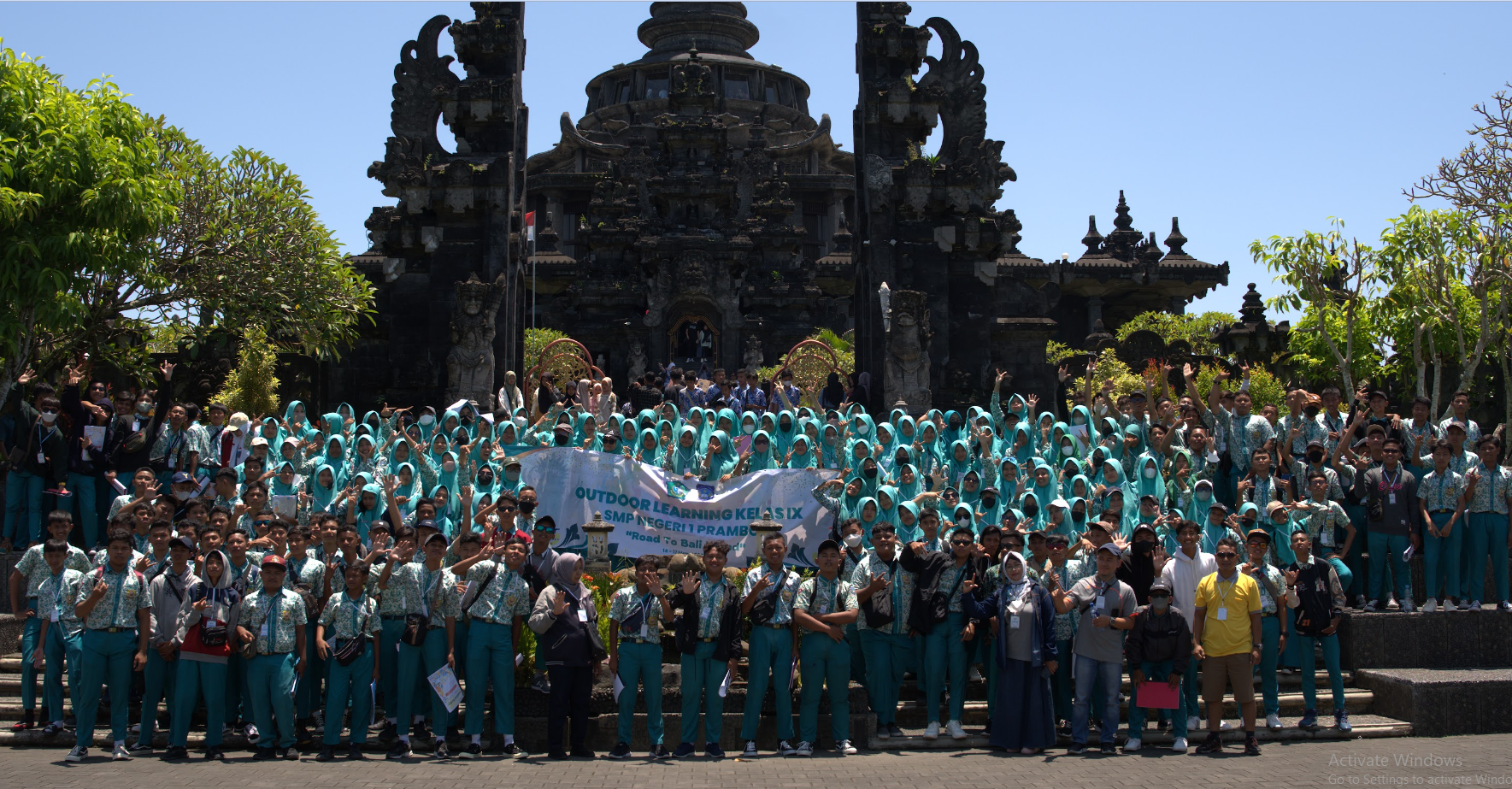 Kegiatan Outdoor Learning kelas IX SMPN 1 Prambon Tahun Pelajaran 2022/2023 dalam menentukan lokasi tujuan dipilihlah Pulau Dewata – Bali . Kegiatan ini dilaksanakan pada senin, 14 – 17 20 Maret 2023.