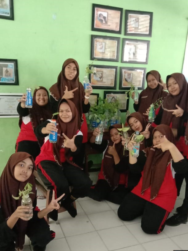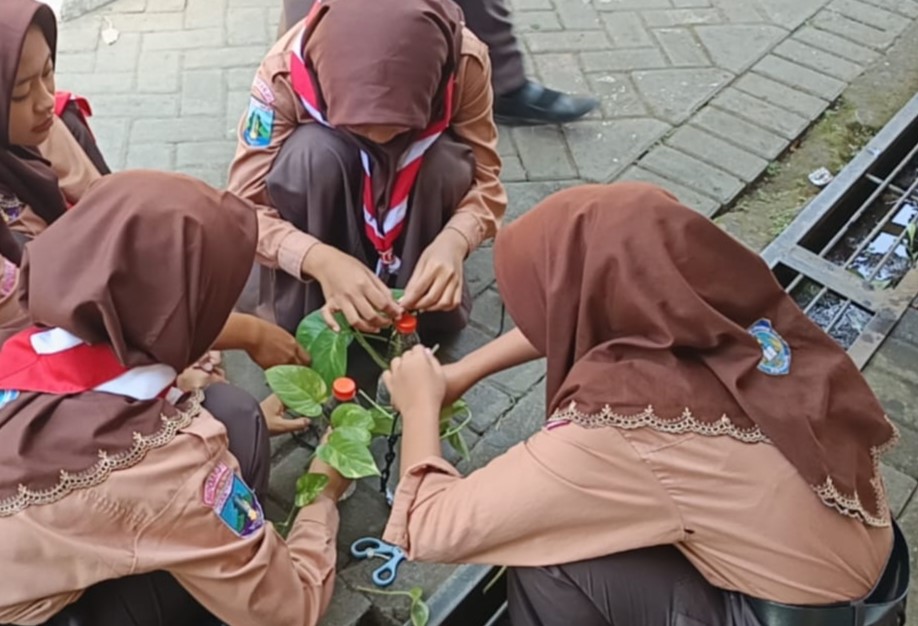 Setiap siswa membawa botol plastik bekas dari rumah yang kemudian digunakan sebagai wadah tanam. Tanaman yang digunakan adalah tanaman Sirih Gading. Sirih Gading merupakan tumbuhan merambat yang menumpang hidup pada tanaman lain, namun tidak menjadi parasit (semi epifit). Tanaman hias ini mudah dipelihara di dalam atau luar rumah, tidak gampang mati, dan punya banyak pilihan jenis. Sehingga, di harapkan tanaman ini dapat bertahan lama.